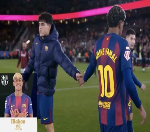 18岁亚马尔剪刀脚染黄!下轮欧冠停赛被换下黑脸:摇头+摊手抱怨 -